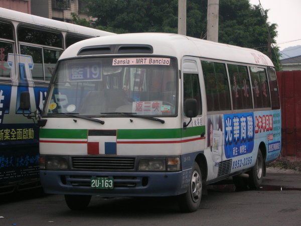 行經板橋篤行路這正是最需要公車的區段,然而藍19卻使用中巴營運,導致沿線乘客搭乘意願降低,土城捷運通車後,篤行路出現藍38與藍44,藍38班次密集搶走藍19客源,版主曾由三峽搭乘藍19至板橋,途經篤行路上的和平街口一帶發現一堆人看到藍19出現卻沒有上車寧可等藍38。